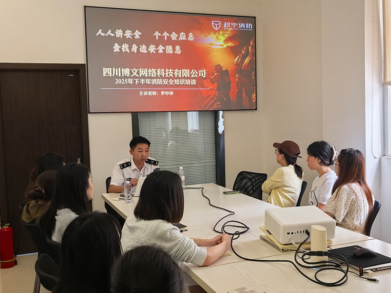 2025年9月20日上午,四川博文網(wǎng)絡(luò)科技有限公司開展以“人人講安全、個(gè)個(gè)會(huì)應(yīng)急——查找身邊安全隱患”為主題的消防安全培訓(xùn)。本次培訓(xùn)活動(dòng)特邀遂寧政寧消防專業(yè)教官羅中坤擔(dān)任主講,面向公司全體員工,系統(tǒng)開展消防安全知識(shí)宣講與應(yīng)急技能實(shí)操訓(xùn)練,進(jìn)一步夯實(shí)企業(yè)安全文化建設(shè),提升員工自我防護(hù)與突發(fā)火情應(yīng)對能力。