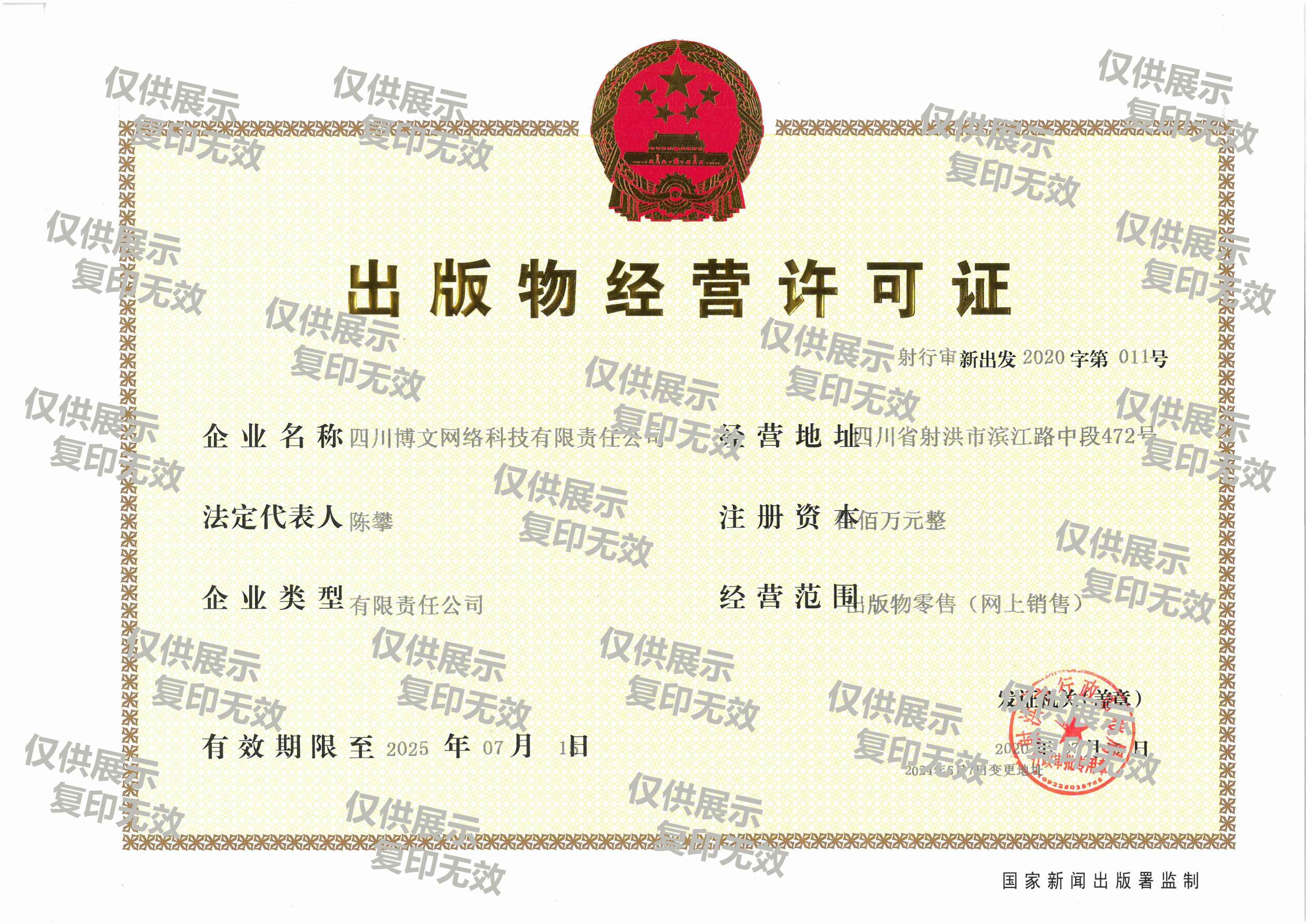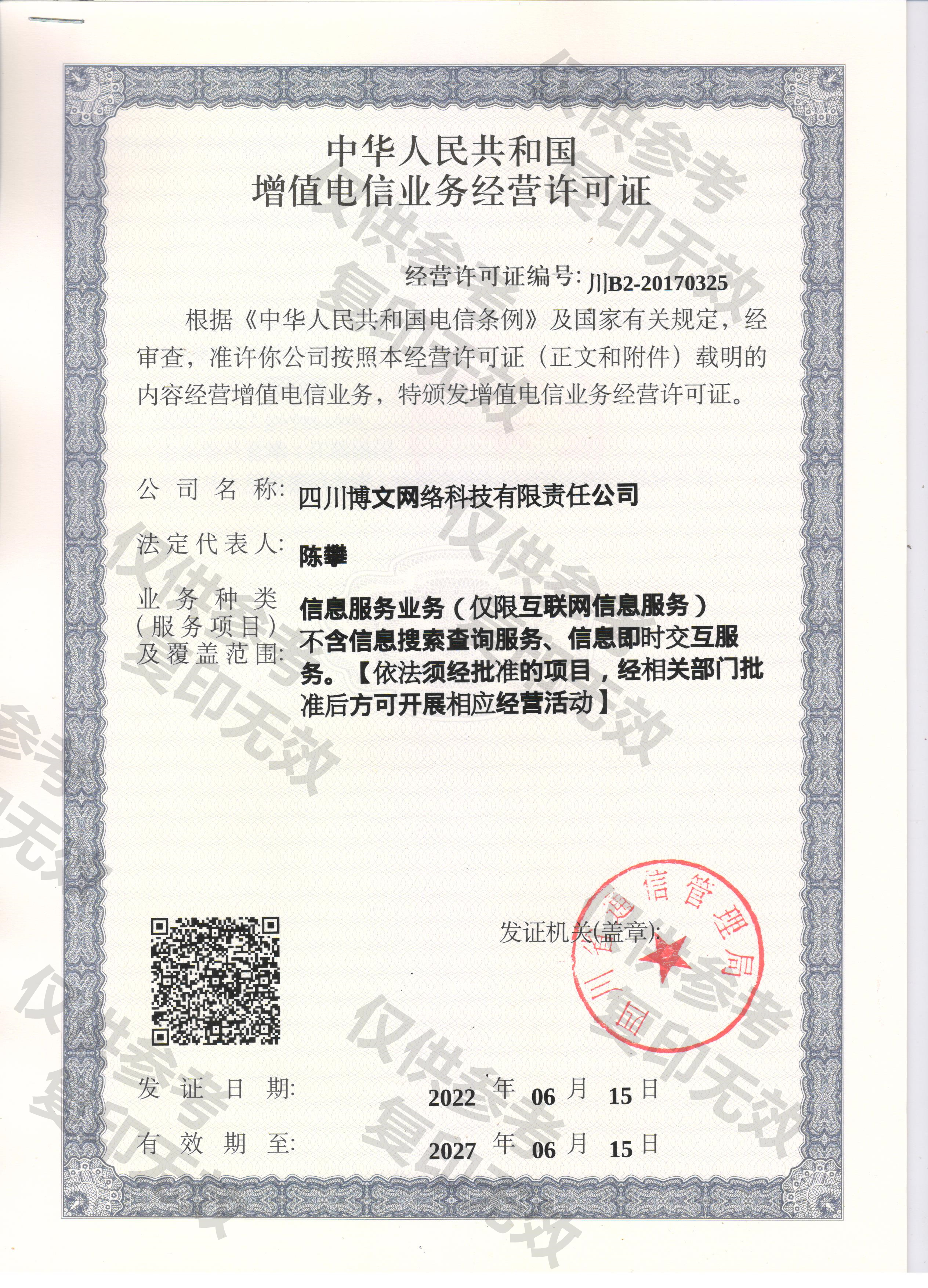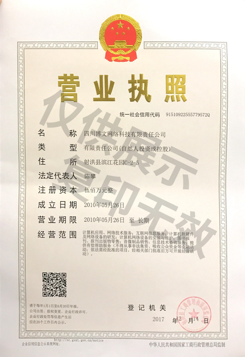 四川博文網(wǎng)絡(luò)科技有限責(zé)任公司許可證件